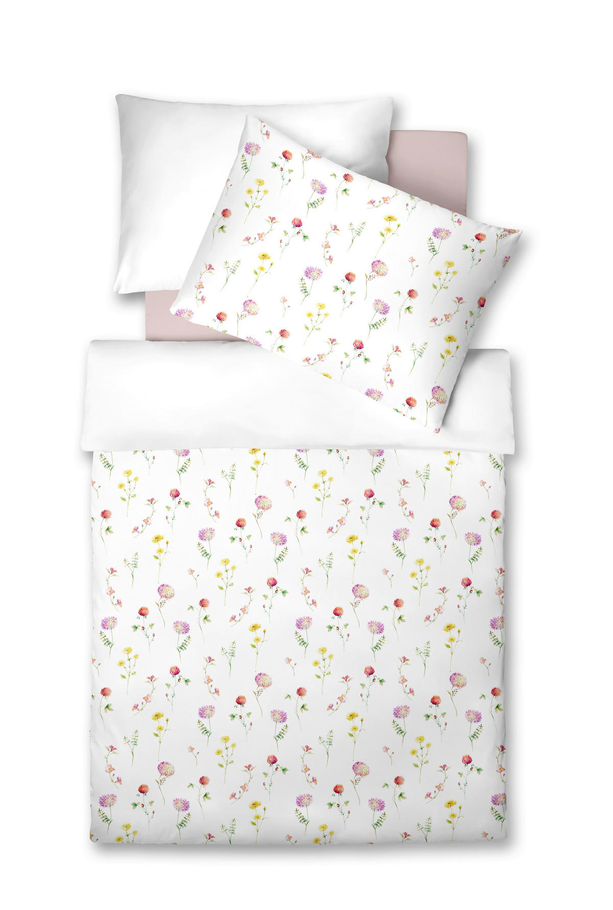 A fehér, világossárga, sötét rózsaszín, orgonaszínű és olívazöld ágyneműhuzat-garnitúra hozzájárul az enteriőr tökéletes összképéhez. A természettől kölcsönzött ihletek jellemzik