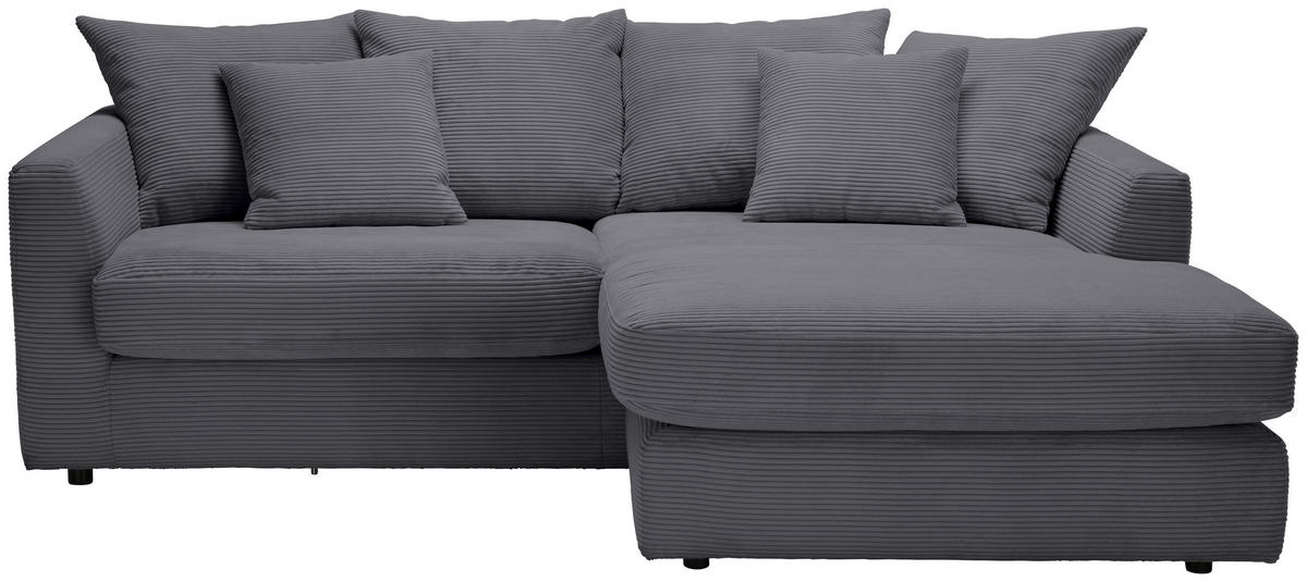 A sötétszürke HOME24 sarokkanapén igazán kényelmesen hátradőlhet otthonában.