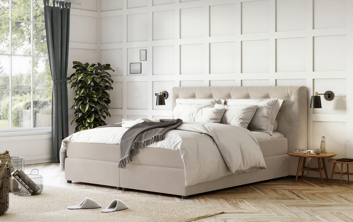 BOXSPRING-ÁGY 160/200 cm  bézs  - bézs, Design, műanyag/textil (160/200cm) - MID.YOU