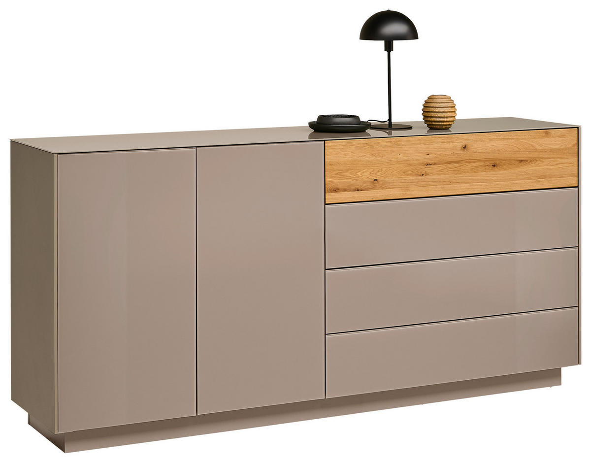 TÁLALÓSZEKRÉNY 189/90/42 cm  - tölgyfa színű/taupe, Design, faalapú anyag/üveg (189/90/42cm) - Novel