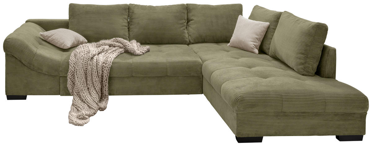 Helyezze magát kényelembe a nappaliban és pihenjen meg ezen az olívazöld MID.YOU sarokkanapén.