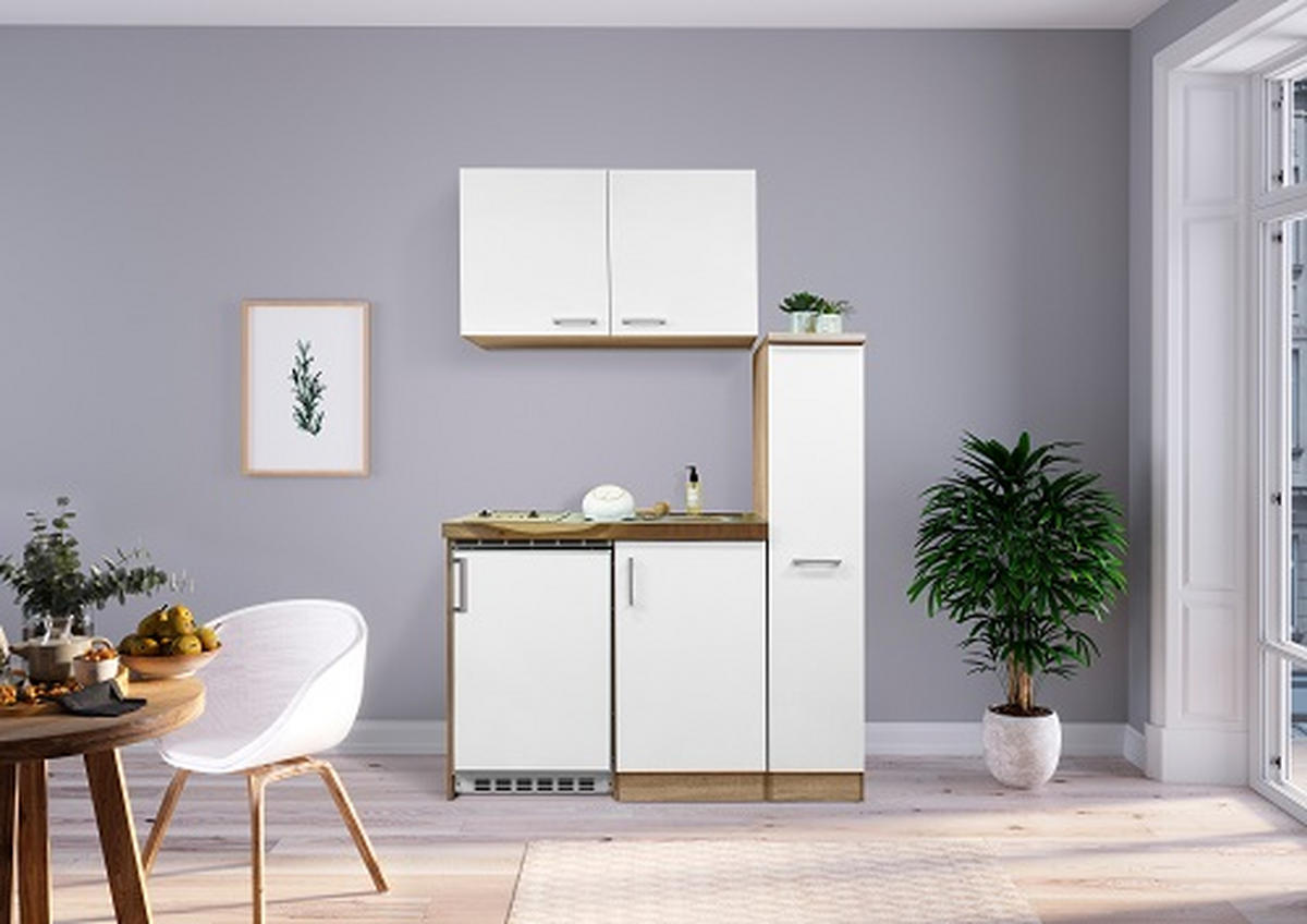 MINI KONYHA 130/146/60 cm  - nemesacélszínű/tölgyfa színű, Modern, faalapú anyag/fém (130/146/60cm) - Respekta